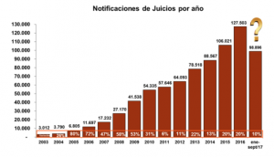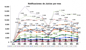 - Variación interanual mensual: -16%. En Septiembre/17 fueron notificados 12.106 juicios, mientras que en Septiembre/16 fueron 14.445.