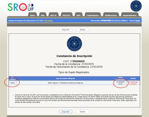 El sistema de empadronamiento de Productores Asesores de Seguros (PAS) y aspirantes está siendo monitoreado por la Superintendencia de Seguros de la Nación para garantizar la efectividad de los trámites. En ese sentido, a fin de agilizar el proceso de re empadronamiento que se realiza mediante la plataforma del Trámite a Distancia (TAD), se comunica que en el campo correspondiente a la Constancia de Inscripción como Sujeto Obligado es suficiente indicar el N° de control y fecha que surgen de la Inscripción en Trámite ante la Unidad de Información Financiera (UIF). Sin perjuicio de ello, el PAS deberá finalizar el trámite ante la UIF, siendo su deber como sujeto obligado estar debidamente inscripto.